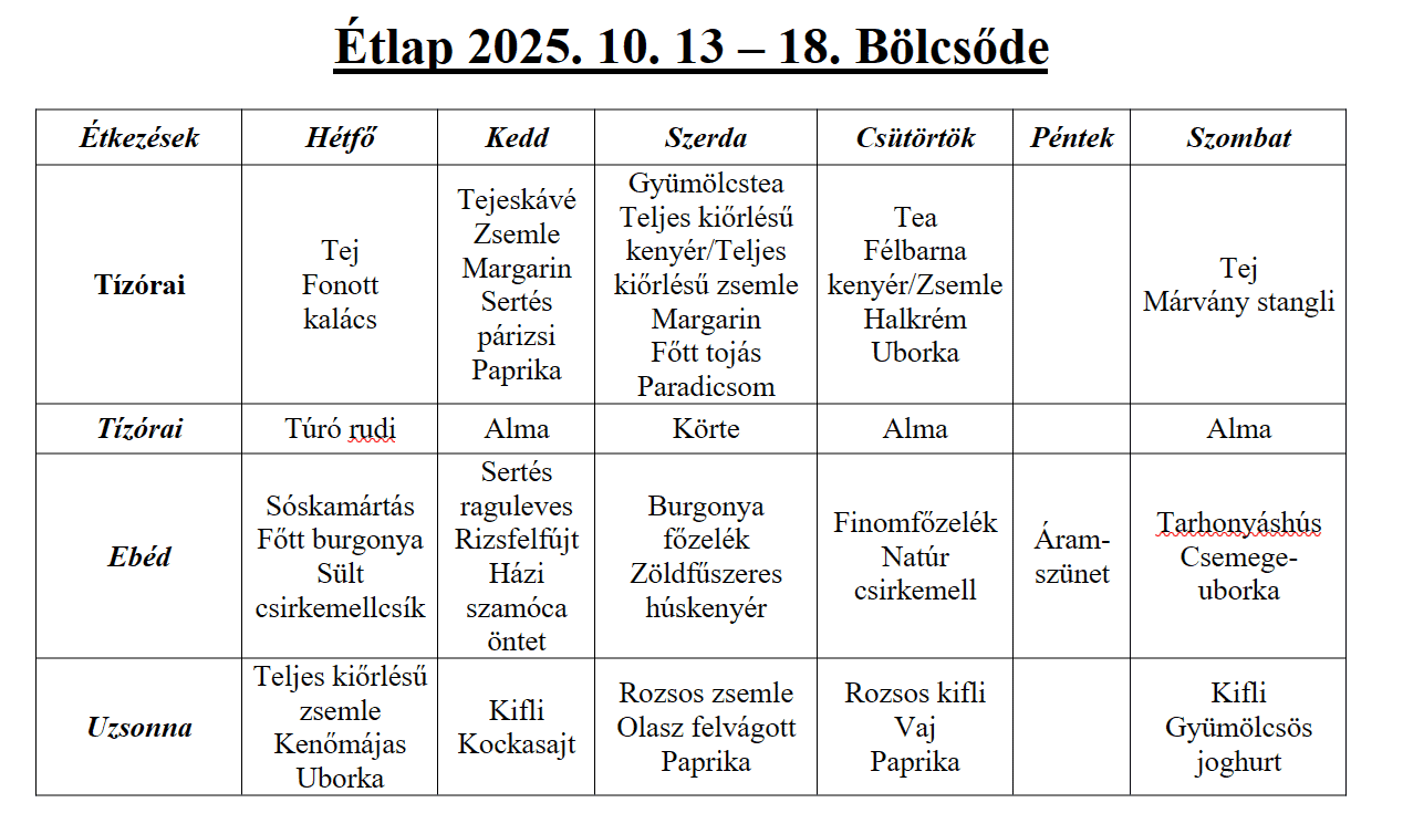Étlap 2025. 10. 13 – 18. Bölcsőde