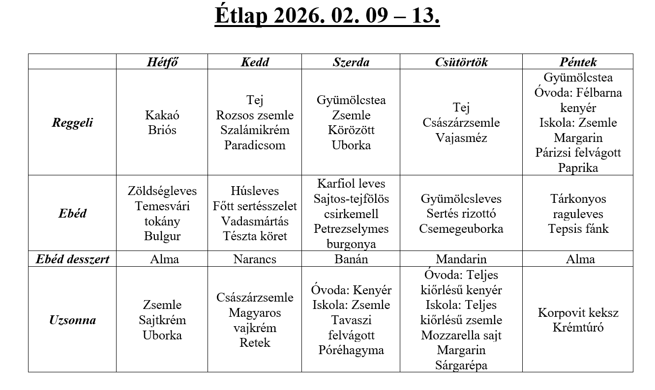 Étlap 2026. 02. 09 – 13.
