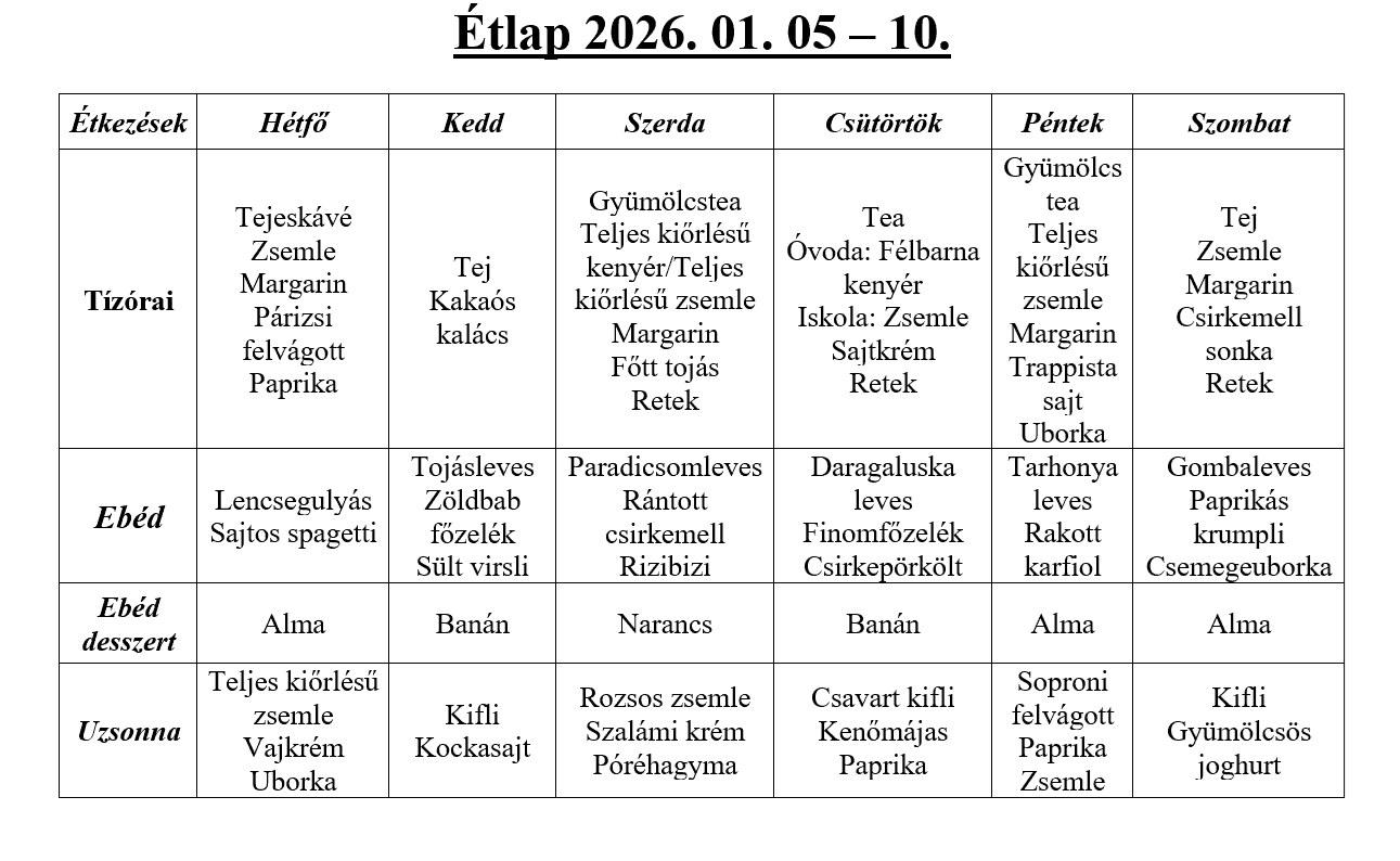 Egészséges étkezési programunkkal azon dolgozunk, hogy a gyerekek minél korábban megismerkedjenek a változatos, ízletes és tápláló ételekkel, és örömmel fogyasszanak minden nap finomabbnál finomabb fogásokat.