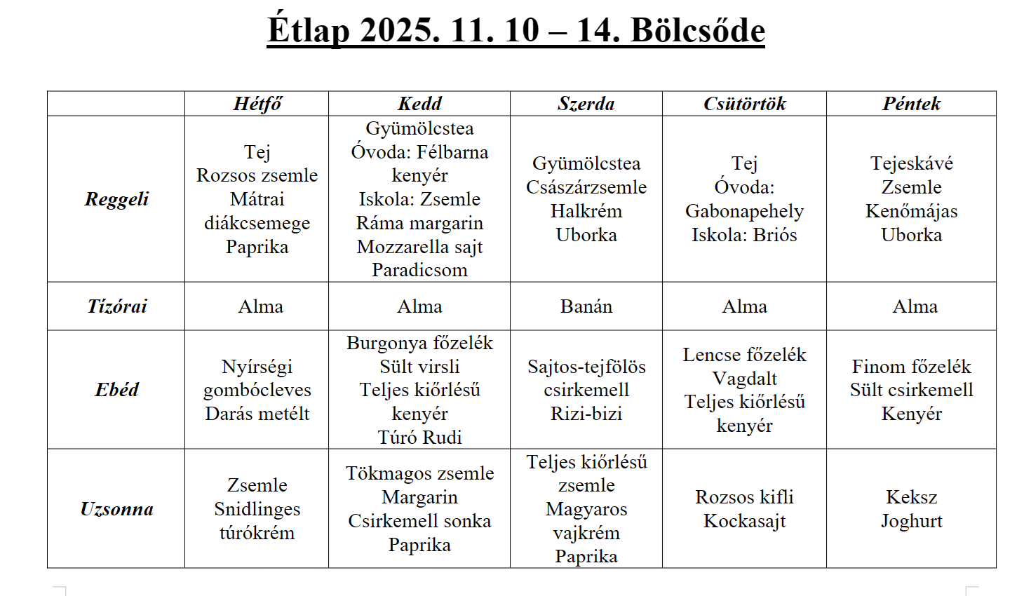 2 fogásos ebédet kínálunk, így biztosan tudnak a gyermekek a fogukra valót találni a menüben. Változatos leveseket, főételként pedig főzelékeket, húsokat, tésztákat kapnak a gyerekek. - 14:45 Uzsonna